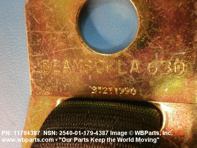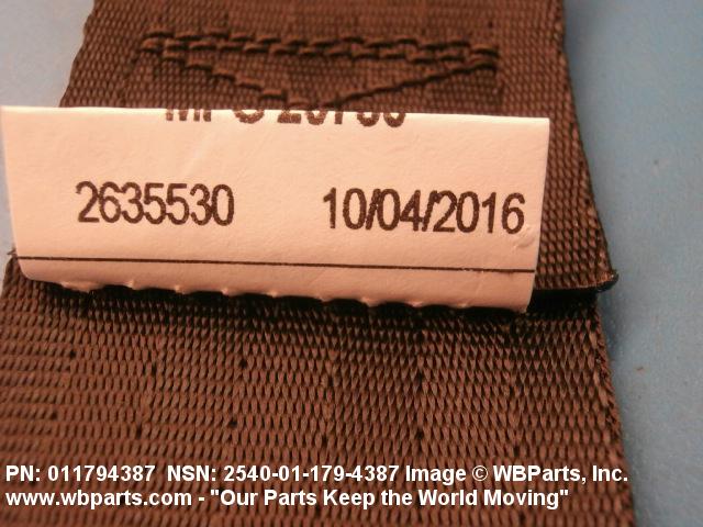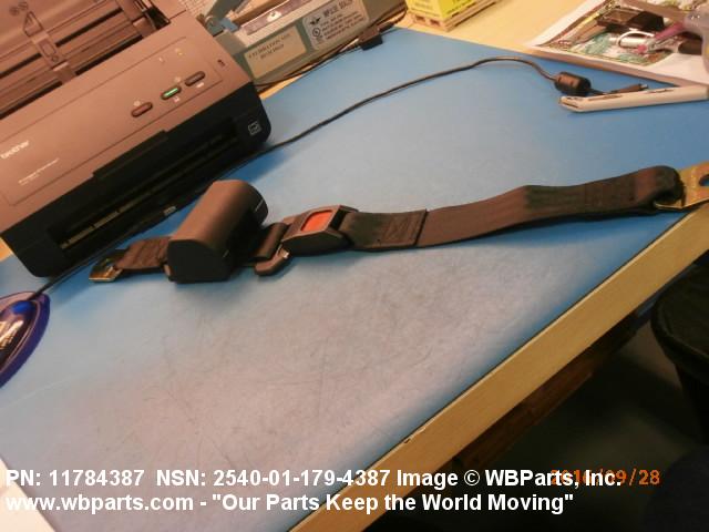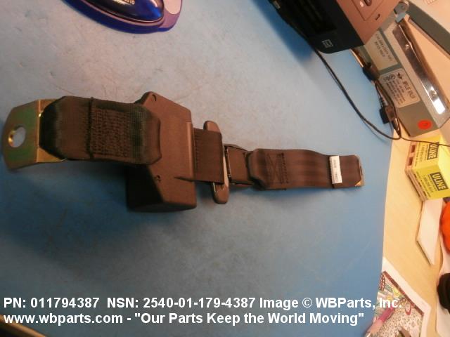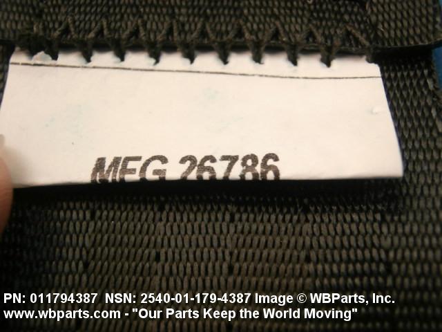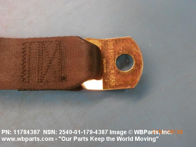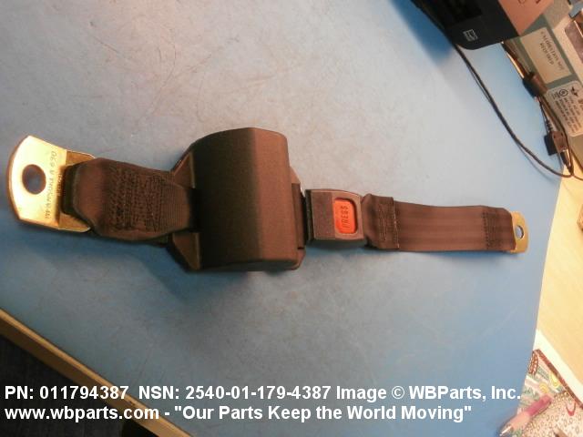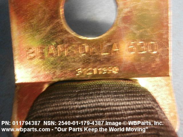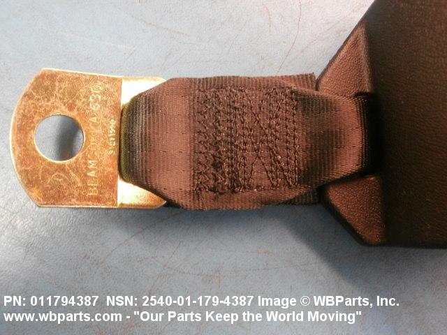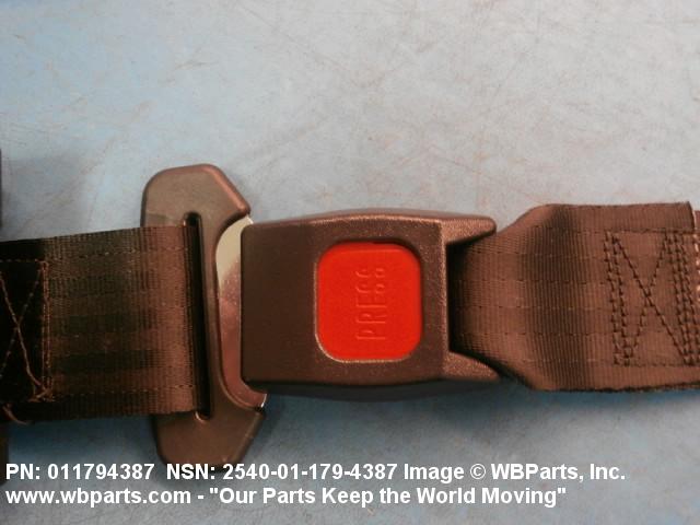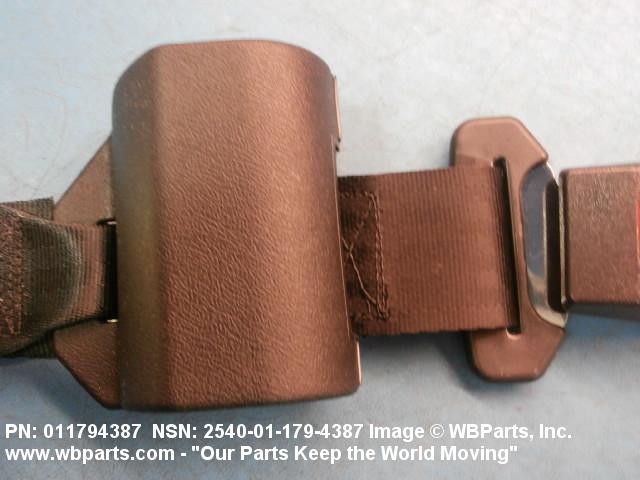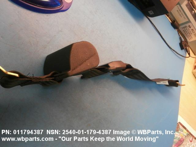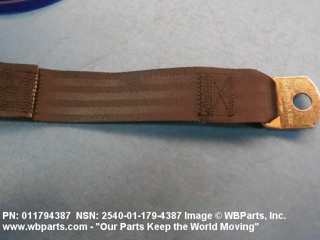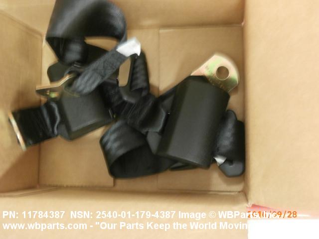2540-01-179-4387 A band of flexible material, designed to secure a person to a seat in a vehicle as a safety measure.