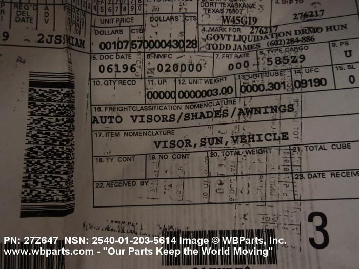 | 25 | 15 MAR 1985 | 01-203-5614 | 18044 ( VISOR, SUN, VEHICLE ) |