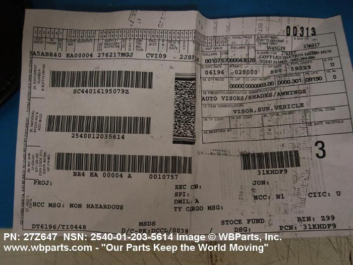 NSN 2540-01-203-5614 V1480192, V148-0192, 27Z647