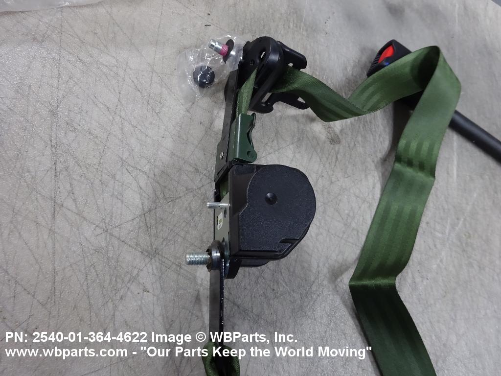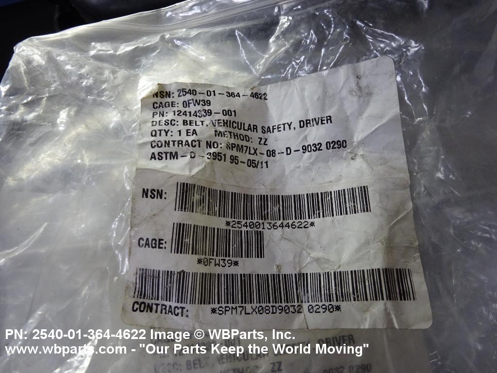 2540-01-364-4622 A band of flexible material, designed to secure a person to a seat in a vehicle as a safety measure.