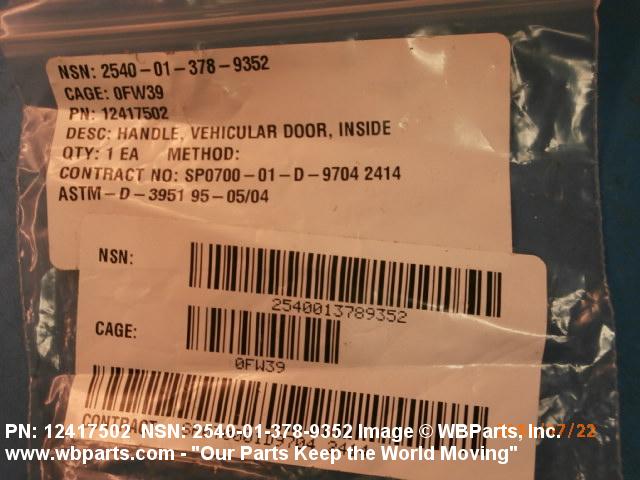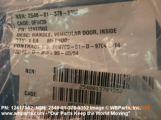 NSN 2540-01-378-9352 12417502, 01-378-9352, 013789352