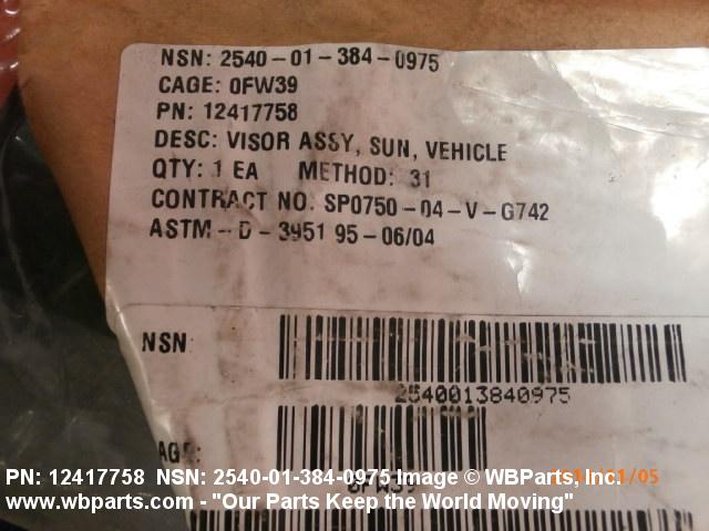 NSN 2540-01-384-0975 115200770017, 12417758, 01-384-0975