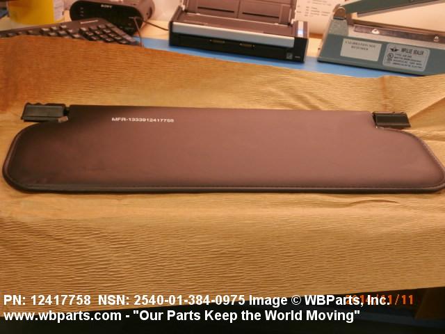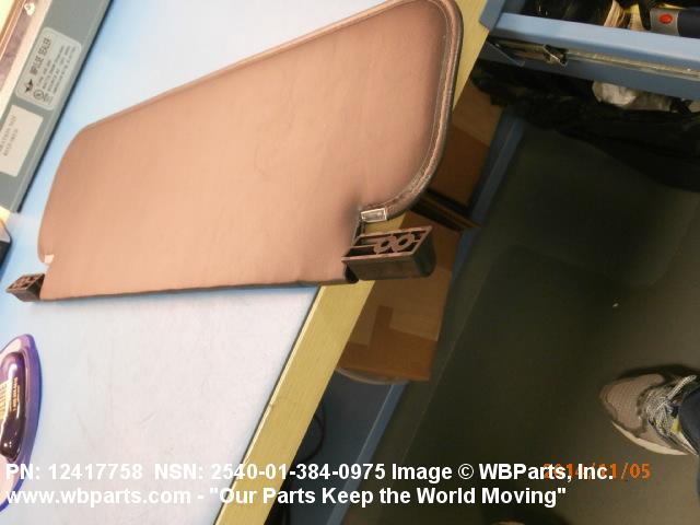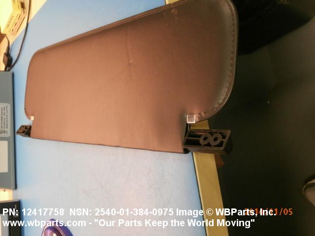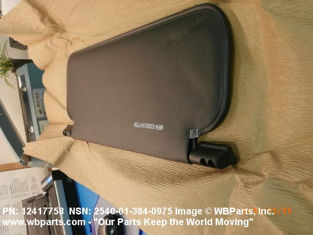 2540-01-384-0975 A shield attached above the windshield or window of a vehicle, designed primarily to protect the vehicle operator from the glare of the sun.