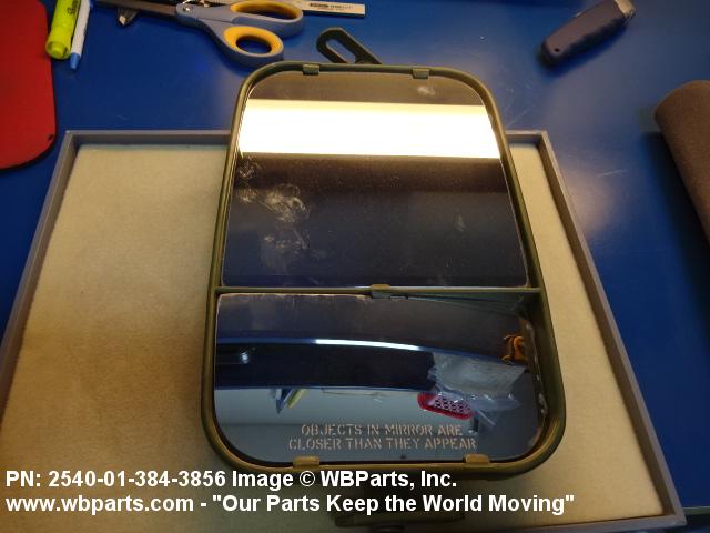 2540-01-384-3856 An item of metal or metal-coated glass encased in a frame which is designed for attachment to various types of mounting brackets. May be round, square or rectangular in shape and may be convex. A heating device may be included. The item does not include mounting brackets/hardware. Excludes MIRROR ASSEMBLY, REARVIEW.