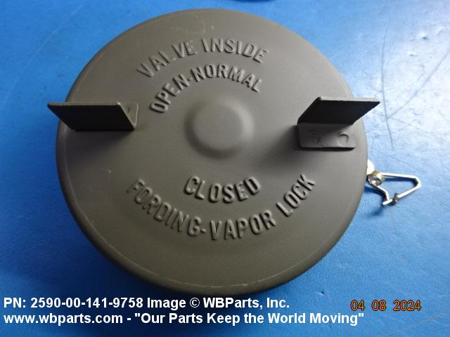 2590-00-141-9758 A part basically circular in shape, designed to cover or seal the filler-neck or inlet opening of a fuel tank, radiator, oil reservoir, liquid storage tank or the like. It may be either permanently attached to the object for which it is designed or provided with a means of removal and replacement. Excludes CAP, VENT, FUEL STORAGE TANK; and COVER (1), (as modified).20525900034Miscellaneous Vehicular Components29300045Engine Cooling System Components, Nonaircraft29350055Engine System Cooling Components, Aircraft Prime Moving53400020Hardware, Commercial53420023Hardware, Weapon System