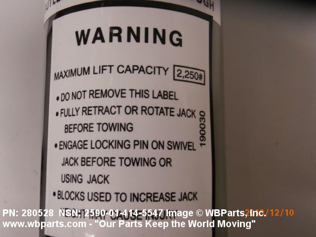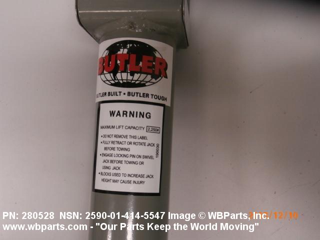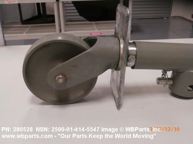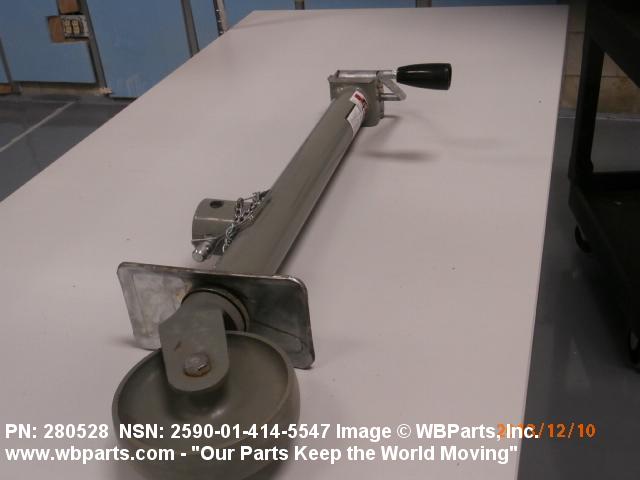 2590-01-414-5547 An assembly usually having one or more adjustable legs with wheels or shoes at their ends, designed to support the front of a trailer when disengaged from the towing vehicle. Excludes support and leveling jacks.