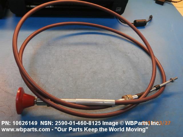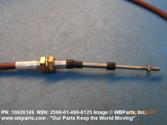 2590-01-460-8125 A control consisting of a wire, wire rope, or a center load rail with ball bearings, within a flexible conduit. One end must have a threaded sleeve for mounting to a wall, bulkhead, or handle, or clevis. It is used to operate or control, either manually or mechanically a mechanical device. It may include such attaching devices as nut(s), washer(s), clevis, bracket(s), and/or the like. For items designed to transmit rotary motion, see SHAFT ASSEMBLY, FLEXIBLE.20516800049Miscellaneous Aircraft Accessories and Components25900034Miscellaneous Vehicular Components29900045Miscellaneous Engine Accessories, Nonaircraft29950042Miscellaneous Engine Accessories, Aircraft30400042Miscellaneous Power Transmission Equipment
