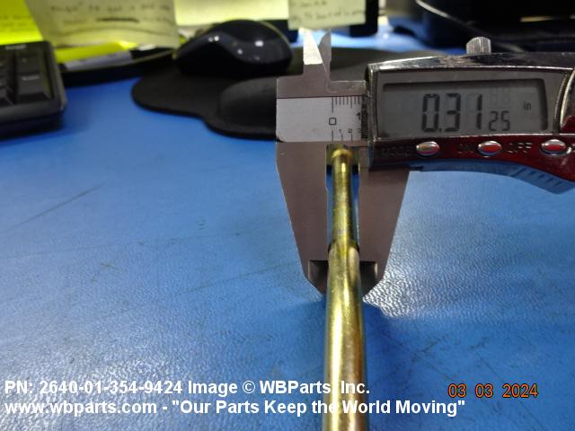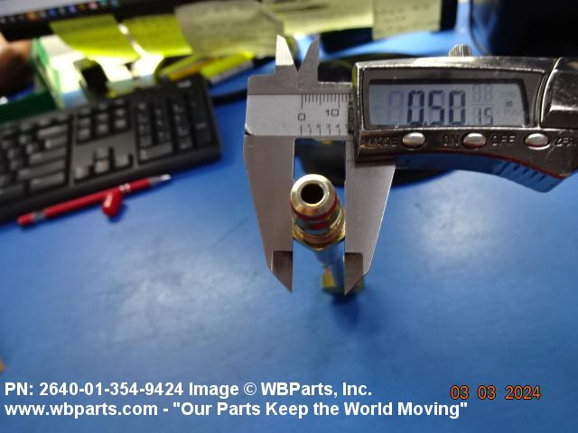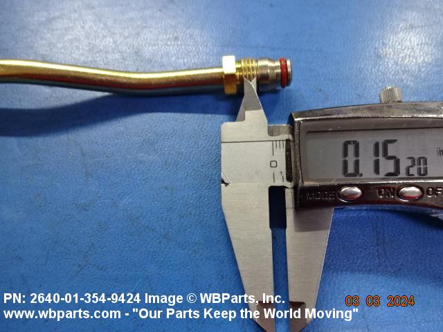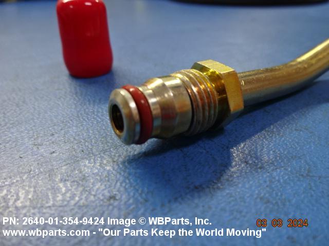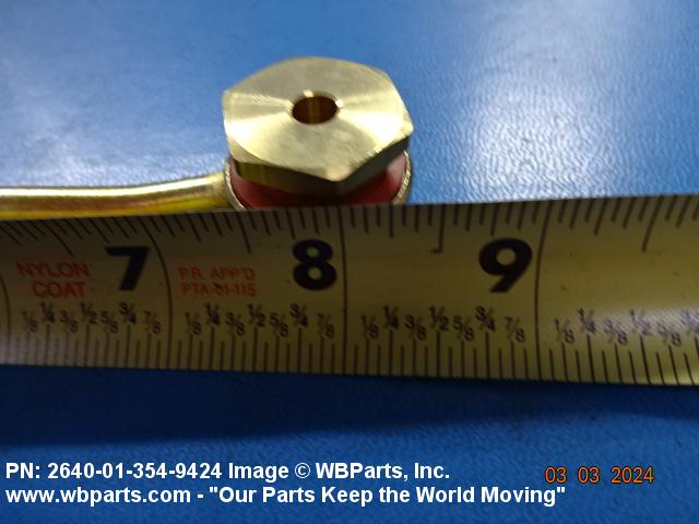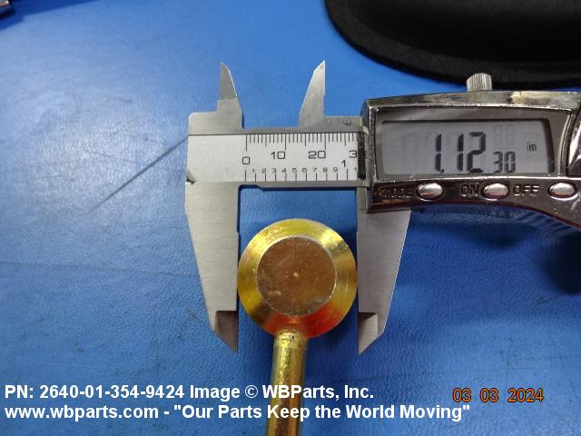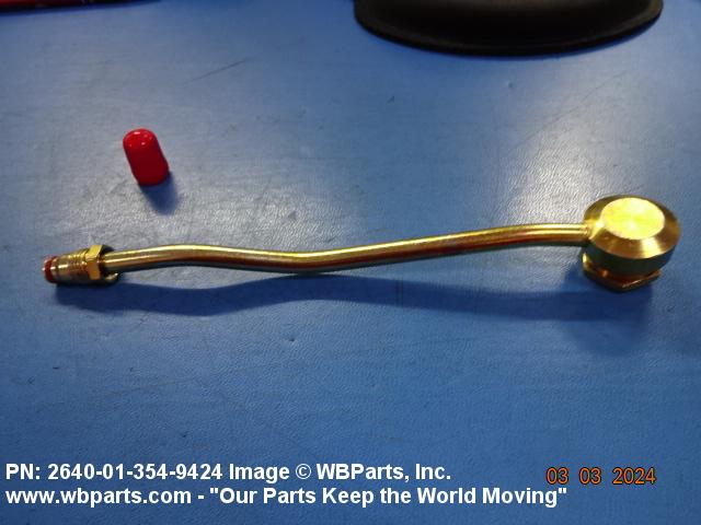 2640-01-354-9424 A metal, or metal and rubber, tubular stem containing a valve core and cap. The mounting end may have a base with a fitting designed for mounting on a pneumatic tire, inner tube, or tire rim, to permit and retain inflation or permit deflation. The mounting end may be internally threaded for adaptability to a valve spud or may be provided with cure-on or clamp in features. The other end is externally threaded to accommodate a valve cap, and internally threaded to accommodate the valve core.