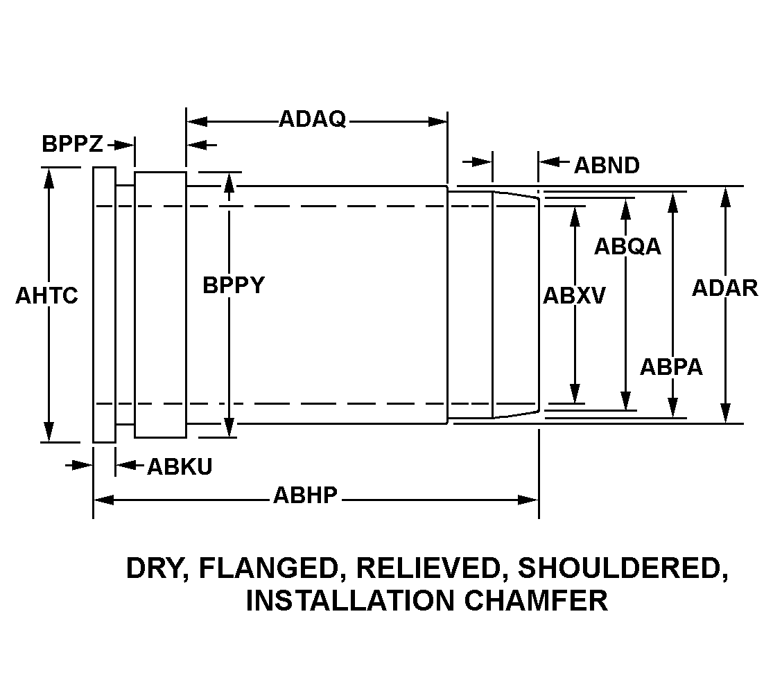 | STYLE DESIGNATOR | A2 DRY, FLANGED, RELIEVED, SHOULDERED, INSTALLATION CHAMFER |