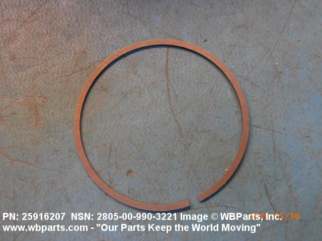 2805-00-990-3221 A circular, single or multipiece item, metallic or nonmetallic in composition, designed to be fitted in a circumferential groove in a piston and to spring outward against the cylinder wall to function as a seal or wiper. It is supplied in various cross-sectional shapes and is cut through at one point to allow for installation in the piston ring groove. It may include an expander. Excludes PACKING, PREFORMED; RETAINER, OIL SEAL; RETAINER, PACKING; RING, RETAINING; RING WIPER; and SEAL RING, METAL.20628050063Gasoline Reciprocating Engines, Except Aircraft; and Components28100068Gasoline Reciprocating Engines, Aircraft Prime Mover; and Components28150029Diesel Engines and Components28250029Steam Turbines and Components30400042Miscellaneous Power Transmission Equipment43100028Compressors and Vacuum Pumps