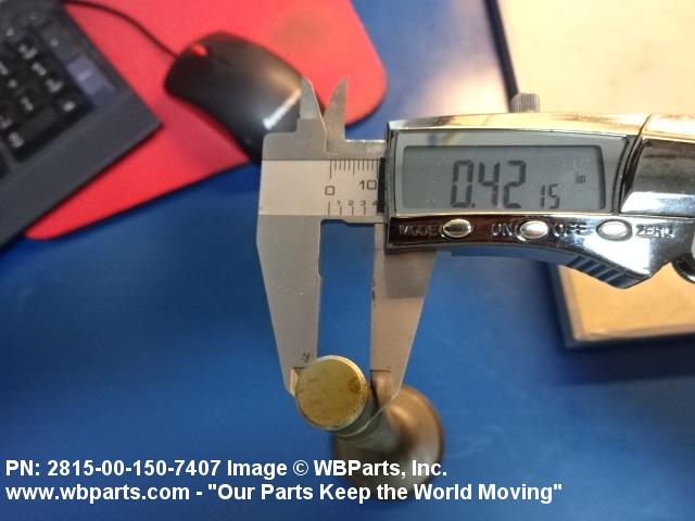 2815-00-150-7407 A mushroom or tulip-shaped item having a circular head with a conical face and an extended stem used to regulate the flow of incoming fuel-air mixture or air into the combustion chamber or exhaust gases from the combustion chamber of a reciprocating internal combustion engine.20328050063Gasoline Reciprocating Engines, Except Aircraft; and Components28100068Gasoline Reciprocating Engines, Aircraft Prime Mover; and Components28150029Diesel Engines and Components
