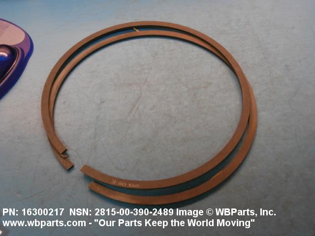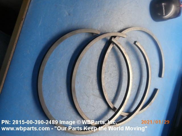 2815-00-390-2489 A circular, single or multipiece item, metallic or nonmetallic in composition, designed to be fitted in a circumferential groove in a piston and to spring outward against the cylinder wall to function as a seal or wiper. It is supplied in various cross-sectional shapes and is cut through at one point to allow for installation in the piston ring groove. It may include an expander. Excludes PACKING, PREFORMED; RETAINER, OIL SEAL; RETAINER, PACKING; RING, RETAINING; RING WIPER; and SEAL RING, METAL.20628050063Gasoline Reciprocating Engines, Except Aircraft; and Components28100068Gasoline Reciprocating Engines, Aircraft Prime Mover; and Components28150029Diesel Engines and Components28250029Steam Turbines and Components30400042Miscellaneous Power Transmission Equipment43100028Compressors and Vacuum Pumps