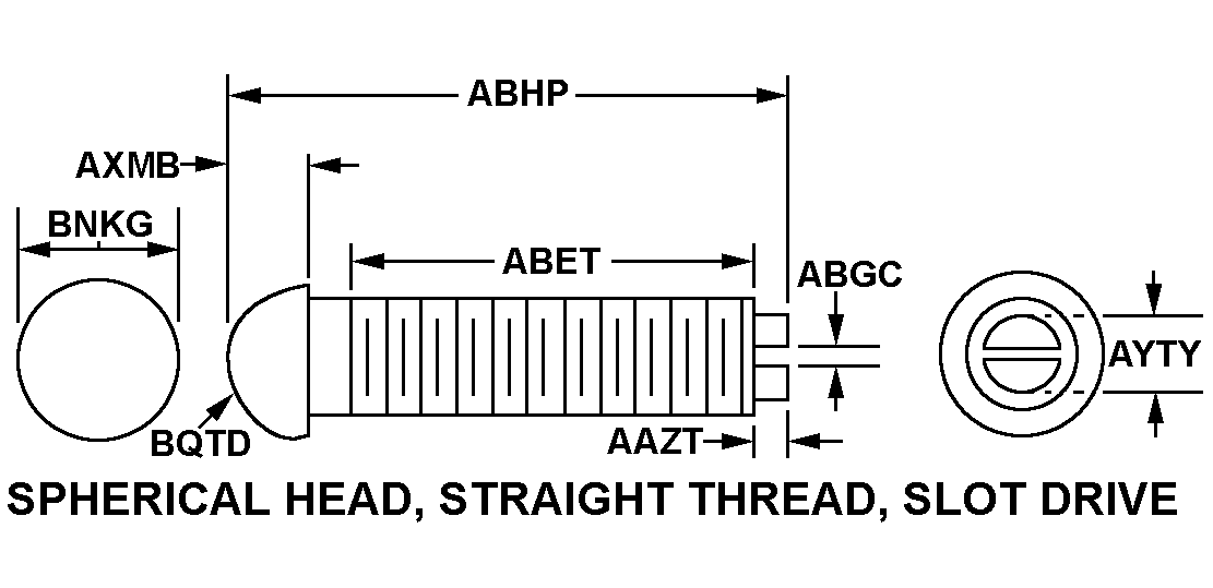 | STYLE DESIGNATOR | T1 SPHERICAL HEAD, STRAIGHT THREAD, SLOT DRIVE |