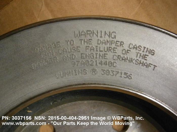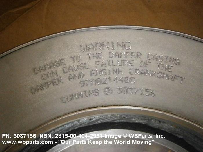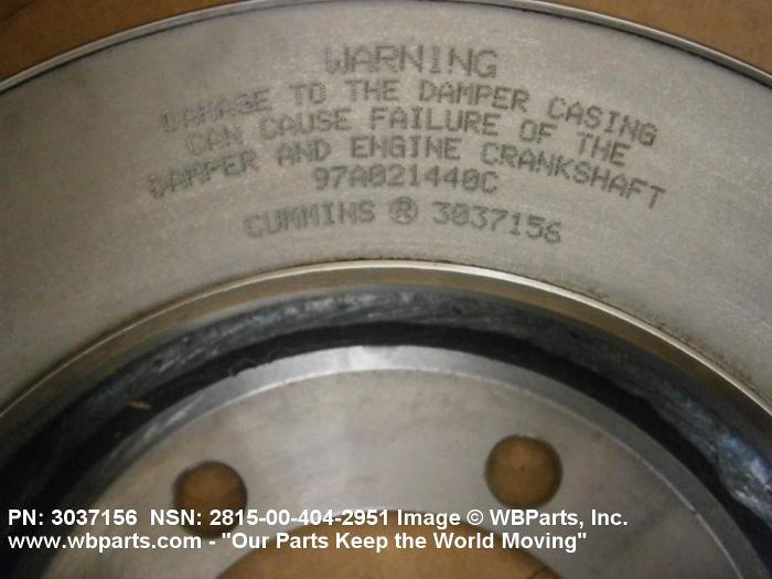 2815-00-404-2951 A device designed to compensate for and reduce the effects of torsional vibration in the crankshaft of an engine. May include rubber cone(s), tension spring(s), friction plate(s), groove(s) for belts, and the like.20228050063Gasoline Reciprocating Engines, Except Aircraft; and Components28150029Diesel Engines and Components