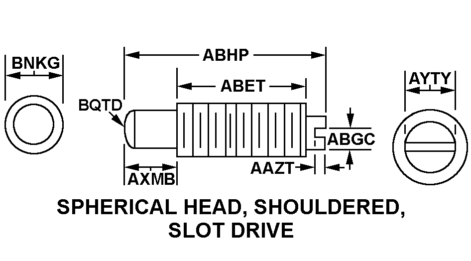 | STYLE DESIGNATOR | T5 SPHERICAL HEAD, SHOULDERED, SLOT DRIVE |