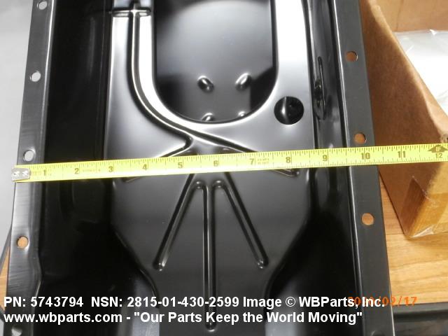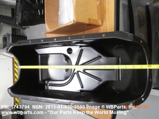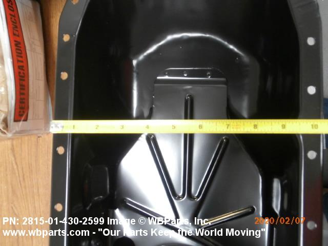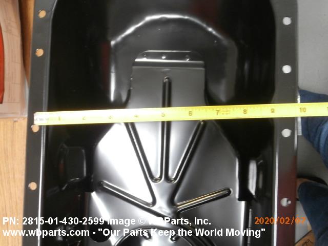 2815-01-430-2599 A metal item designed to be attached to the lower portion of an internal combustion engine, compressor, hydraulic transmission, and the like. It serves as a reservoir for lubrication oil and may include baffle(s), oil cooler connectors, or the like. For items furnished with gasket(s), hardware, drain plugs, and the like, see PARTS KIT, OIL PAN.20425200039Vehicular Power Transmission Components28050063Gasoline Reciprocating Engines, Except Aircraft; and Components28150029Diesel Engines and Components43100028Compressors and Vacuum Pumps