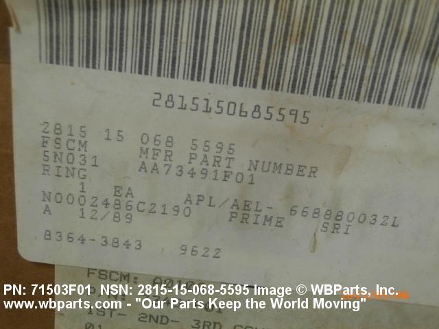 Part Alternates: 71503, 71503F01, 2815-15-068-5595, 15-068-5595, 2815150685595, 150685595