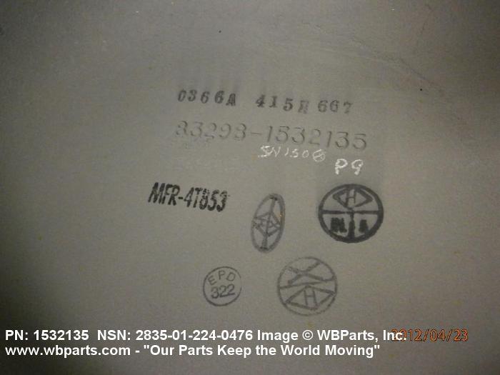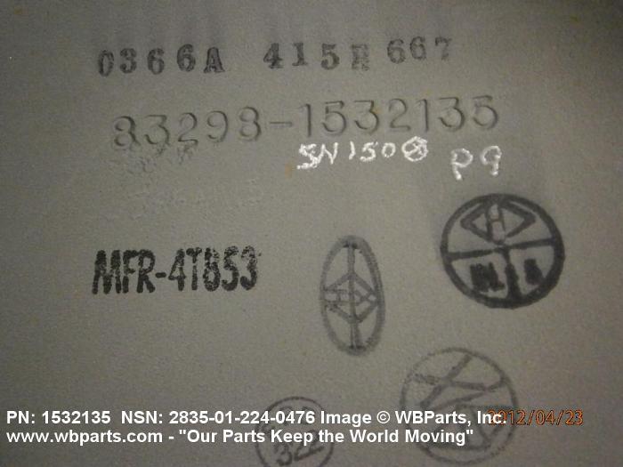 Part Alternates: 1532135, 2835-01-224-0476, 01-224-0476, 2835012240476, 012240476