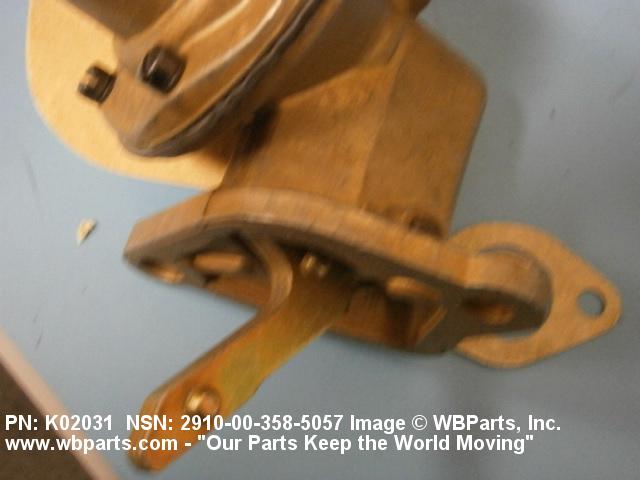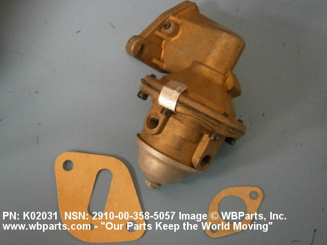 2910-00-358-5057 A device designed to transfer liquid fuel from a tank to a carburetor, or fuel injector metering and distribution pump of an internal combustion engine. Reciprocating motion of the diaphragm(s) is actuated through linkage from the engine camshaft. It may include a diaphragm actuated vacuum booster. Excludes electrical and rotor type engine fuel pumps.20229100042Engine Fuel System Components, Nonaircraft29150064Engine Fuel System Components, Aircraft and Missile Prime Movers