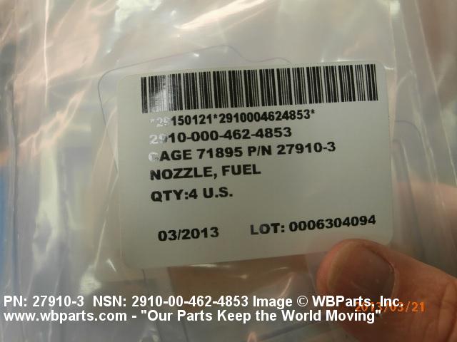 | 27910-3 | 71895 | DELAVAN INC DBA TURBINE FUEL TECHNOLOGIES |