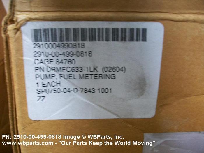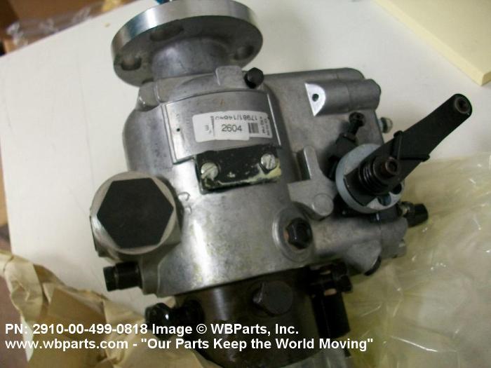 2910-00-499-0818 A device specifically designed to (1) increase the pressure of, (2) meter the amount of, (3) control the distribution of liquid fuel received directly or indirectly from the TANK, FUEL, ENGINE to the individual air inlet tubes or combustion chambers of gasoline or diesel engines.20229100042Engine Fuel System Components, Nonaircraft29150064Engine Fuel System Components, Aircraft and Missile Prime Movers