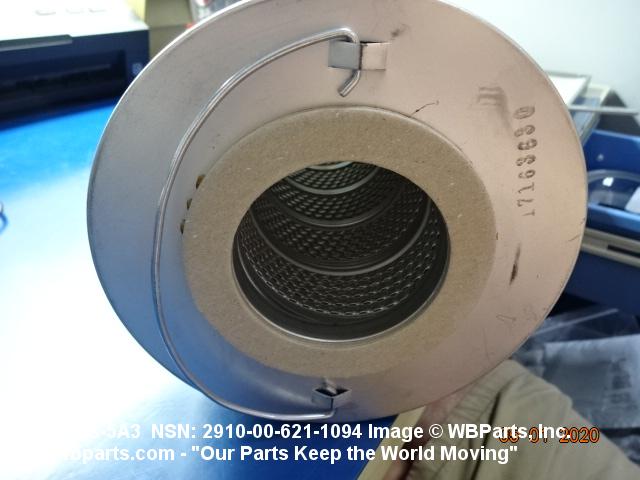 2910-00-621-1094 A replaceable device designed to remove solid particles from fluids ranging in density from heavy liquids to gases. The removal of particles is accomplished by porous material (metallic or non-metallic), stacked disks, wound wire, or the like, constructed so the fluid can flow through the device while the solid particles are retained. It may be designed to fit into a FILTER, FLUID (or similar cavity), or it may have an integral outer casing and mounting facilities and be designed to connect directly to an engine, compressor, or the like. The degree of removal of particles must be nominally rated at less than 50 microns or absolutely rated at less than 75 microns. Excludes FILTER ELEMENT, AIR CONDITIONING. See also STRAINER ELEMENT, SEDIMENT.20916500058Aircraft Hydraulic, Vacuum, and De-icing System Components29100042Engine Fuel System Components, Nonaircraft29150064Engine Fuel System Components, Aircraft and Missile Prime Movers29400064Engine Air and Oil Filters, Strainers, and Cleaners, Nonaircraft29450059Engine Air and Oil Filters, Cleaners, Aircraft Prime Moving43300057Centrifugals, Separators, and Pressure and Vacuum Filters5999000065300053Hospital Furniture, Equipment, Utensils, and Supplies66300029Chemical Analysis Instruments