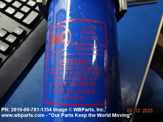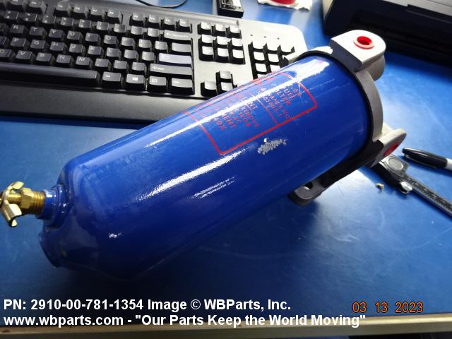 2910-00-781-1354 A filter having inlet and outlet connections and designed to be connected in a pipe, tube or hose line. For spin-on, base-mounted filtering devices with integral outer casings, see FILTER ELEMENT, FLUID. Excludes AIR CONDITIONER.21516500058Aircraft Hydraulic, Vacuum, and De-icing System Components16600062Aircraft Air Conditioning, Heating, and Pressurizing Equipment25300060Vehicular Brake, Steering, Axle, Wheel, and Track Components29100042Engine Fuel System Components, Nonaircraft29150064Engine Fuel System Components, Aircraft and Missile Prime Movers29400064Engine Air and Oil Filters, Strainers, and Cleaners, Nonaircraft29450059Engine Air and Oil Filters, Cleaners, Aircraft Prime Moving41300045Refrigeration and Air Conditioning Components43300057Centrifugals, Separators, and Pressure and Vacuum Filters4930000063500059Miscellaneous Alarm, Signal, and Security Detection Systems65150057Medical and Surgical Instruments, Equipment, and Supplies65300053Hospital Furniture, Equipment, Utensils, and Supplies65400047Ophthalmic Instruments, Equipment, and Supplies66300029Chemical Analysis Instruments
