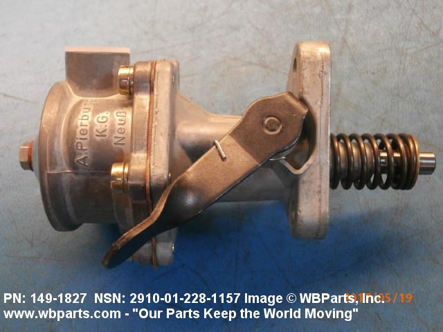 2910-01-228-1157 A device designed to transfer liquid fuel from a tank to a carburetor, or fuel injector metering and distribution pump of an internal combustion engine. Reciprocating motion of the diaphragm(s) is actuated through linkage from the engine camshaft. It may include a diaphragm actuated vacuum booster. Excludes electrical and rotor type engine fuel pumps.20229100042Engine Fuel System Components, Nonaircraft29150064Engine Fuel System Components, Aircraft and Missile Prime Movers