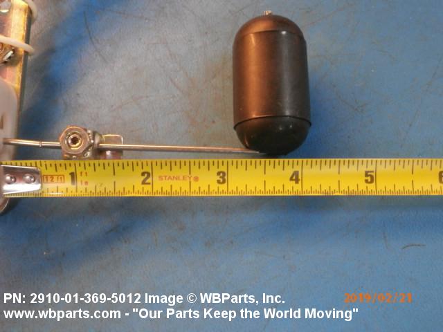 2910-01-369-5012 A switch which is actuated by a float or sensing device(s) to control liquid level and/or actuate visual or audible warning systems. It may include a relay controlled by the switch element. Excludes TRANSMITTER,LIQUID QUANTITY.20429100042Engine Fuel System Components, Nonaircraft29150064Engine Fuel System Components, Aircraft and Missile Prime Movers59300008Switches66800078Liquid and Gas Flow, Liquid Level, and Mechanical Motion Measuring Instruments