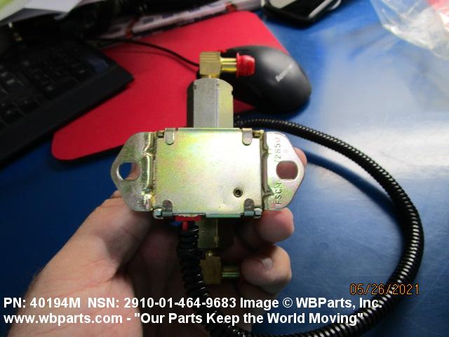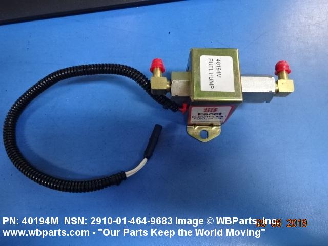 2910-01-464-9683 An electrically actuated positive displacement device, which utilizes reciprocating or rotary motion to transfer fuel from a tank to a carburetor or fuel injector metering and distribution pump of an internal combustion engine. Excludes General Purpose Pumps.