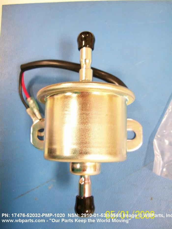 2910-01-538-9565 An electrically actuated positive displacement device, which utilizes reciprocating or rotary motion to transfer fuel from a tank to a carburetor or fuel injector metering and distribution pump of an internal combustion engine. Excludes General Purpose Pumps.