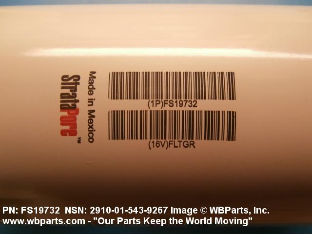 2910-01-543-9267 A replaceable device designed to remove solid particles from fluids ranging in density from heavy liquids to gases. The removal of particles is accomplished by porous material (metallic or non-metallic), stacked disks, wound wire, or the like, constructed so the fluid can flow through the device while the solid particles are retained. It may be designed to fit into a FILTER, FLUID (or similar cavity), or it may have an integral outer casing and mounting facilities and be designed to connect directly to an engine, compressor, or the like. The degree of removal of particles must be nominally rated at less than 50 microns or absolutely rated at less than 75 microns. Excludes FILTER ELEMENT, AIR CONDITIONING. See also STRAINER ELEMENT, SEDIMENT.20916500058Aircraft Hydraulic, Vacuum, and De-icing System Components29100042Engine Fuel System Components, Nonaircraft29150064Engine Fuel System Components, Aircraft and Missile Prime Movers29400064Engine Air and Oil Filters, Strainers, and Cleaners, Nonaircraft29450059Engine Air and Oil Filters, Cleaners, Aircraft Prime Moving43300057Centrifugals, Separators, and Pressure and Vacuum Filters5999000065300053Hospital Furniture, Equipment, Utensils, and Supplies66300029Chemical Analysis Instruments