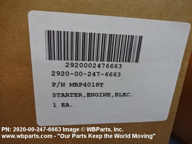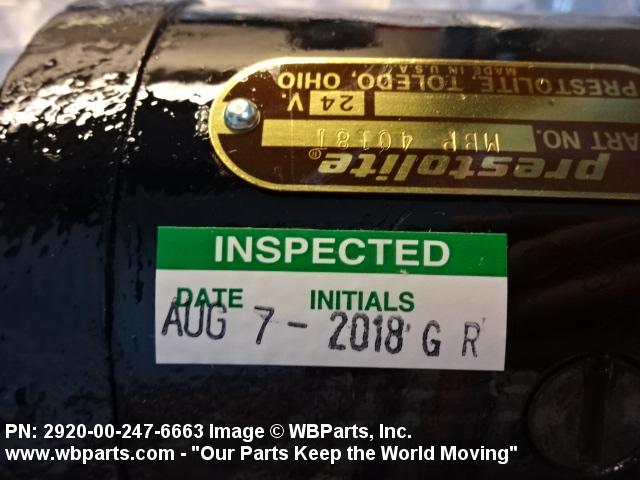2920-00-247-6663 An item consisting of an electric, direct current, motor and integral and associated components, primarily designed to crank an internal combustion engine, or a gas turbine engine until it starts operating under its own power. May include facilities for manual or mechanical actuation. Excludes MOTOR, ENGINE STARTER, ELECTRICAL; STARTER, MOTOR; STARTER, ENGINE (as modified); and SWITCH, ENGINE STARTER, ELECTRICAL.2031730000029200048Engine Electrical System Components, Nonaircraft29250058Engine Electrical System Components, Aircraft Prime Moving