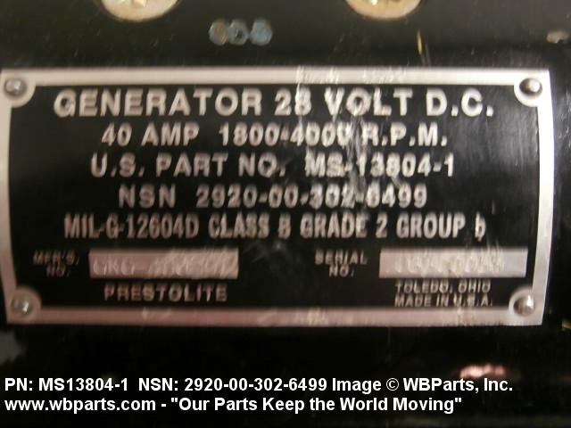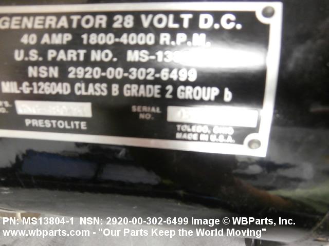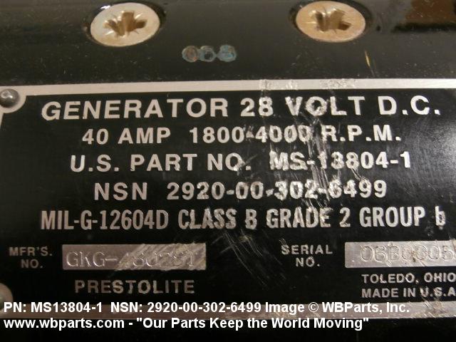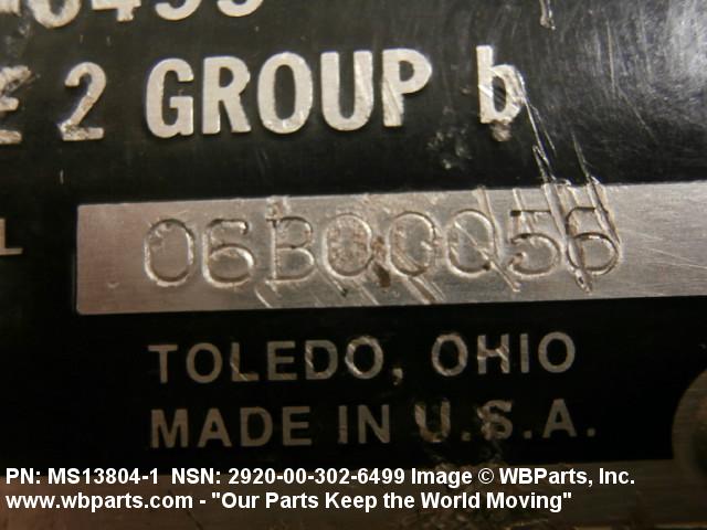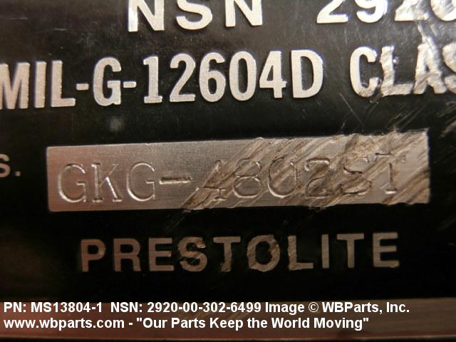 Part Alternates: MS138041, MS13804-1, GKG4802ST, MILG12604, 1117478, 2920-00-302-6499, 00-302-6499, 2920003026499, 003026499
