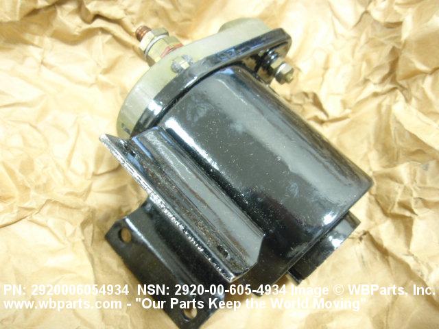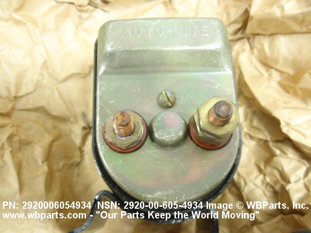2920-00-605-4934 An item having a moving plunger type core which travels parallel to the longitudinal axis of the coil(s), and which is primarily designed to perform the dual function of closing the circuit of a STARTER, ENGINE, ELECTRICAL and actuating the starter engaging mechanism. It must have provisions for attaching the mechanical linkage for actuating the engaging mechanism if the linkage is not included. May have provisions for manual actuation. Without contacts this item is known as a SOLENOID, ELECTRICAL. Without provisions for attaching mechanical linkage this item is known as a RELAY, ELECTROMAGNETIC. See also SWITCH, ENGINE STARTER, ELECTRICAL.20229200048Engine Electrical System Components, Nonaircraft29250058Engine Electrical System Components, Aircraft Prime Moving