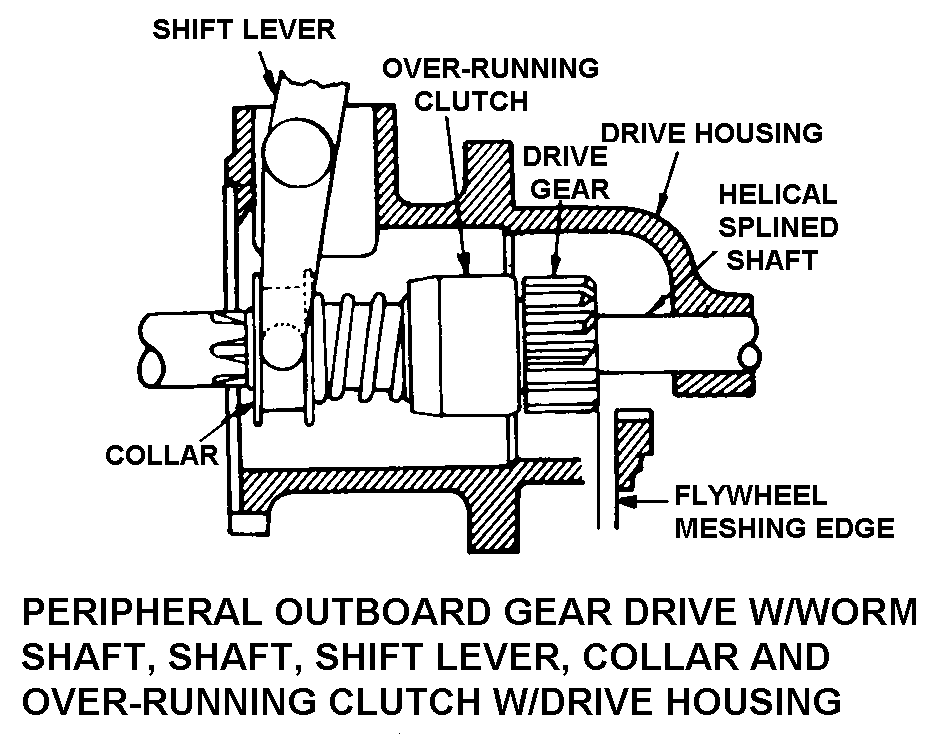 | ENGAGING MECHANISM STYLE | 17 PERIPHERAL OUTBOARD GEAR DRIVE W/WORM SHAFT, SHAFT, SHIFT LEVER, COLLAR AND OVER-RUNNING CLUTCH W/DRIVE HOUSING |