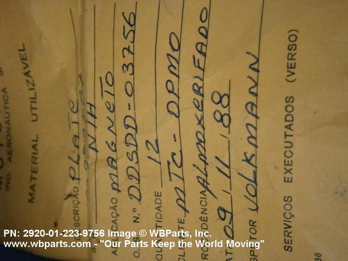 2920-01-223-9756 An item generally circular in shape with basic thickness small in relation to the diameter. Includes holes, staked posts and/or protrusions used to position and support the electrical contacts of an ignition system. May include capacitor(s) and electrical contacts.20229200048Engine Electrical System Components, Nonaircraft29250058Engine Electrical System Components, Aircraft Prime Moving