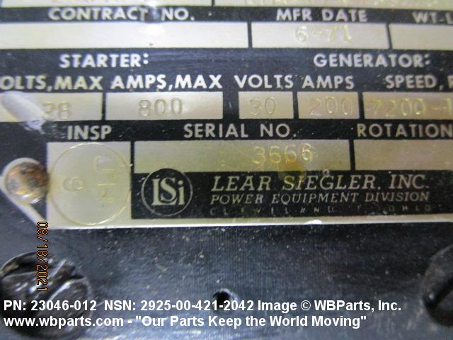 Part Alternates: 166E2811, 166E281-1, 23046012, 23046-012, 2925-00-421-2042, 00-421-2042, 2925004212042, 004212042