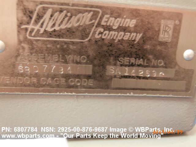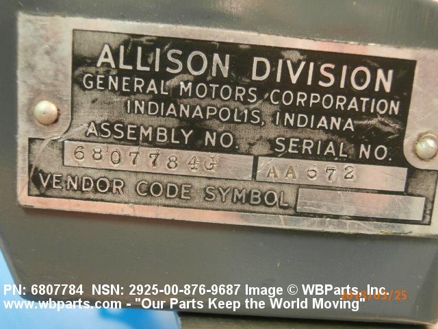 Part Alternates: 6807784, 2925-00-876-9687, 00-876-9687, 2925008769687, 008769687