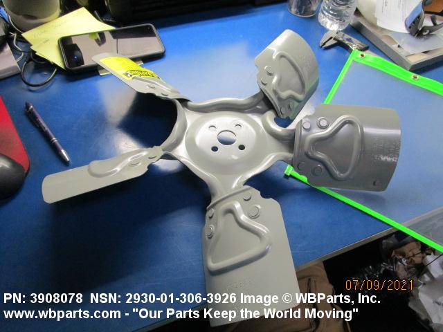2930-01-306-3926 An item with blades or vanes equally spaced radially around the periphery of a hub, flange, or rotor. It is the rotating part of an axial type fan, electric motor, generator, and the like which creates a flow of air or gas parallel to the axis of rotation.20229300045Engine Cooling System Components, Nonaircraft41400043Fans, Air Circulators, and Blower Equipment