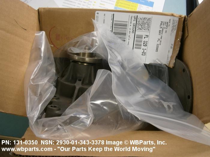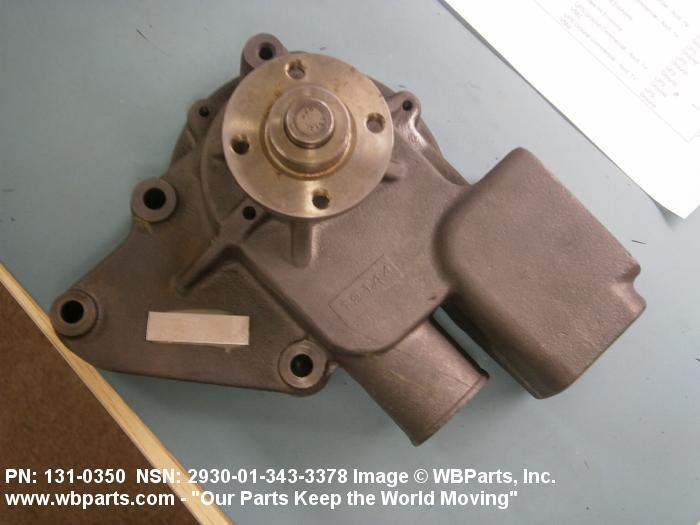 2930-01-343-3378 A power driven item specifically designed to circulate water mixed with antifreeze and the like through the block and radiator for cooling. May include items such as pulley; coupling; gear and the like. Excludes PUMP (as modified).