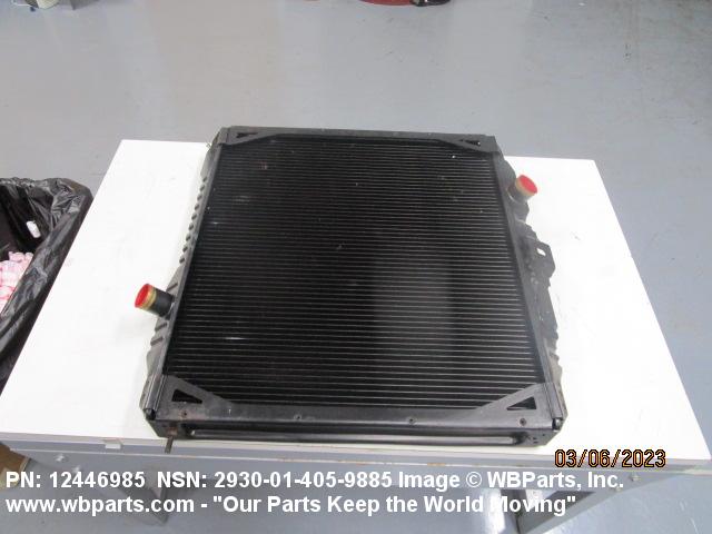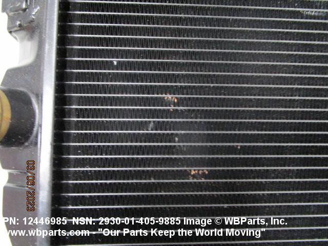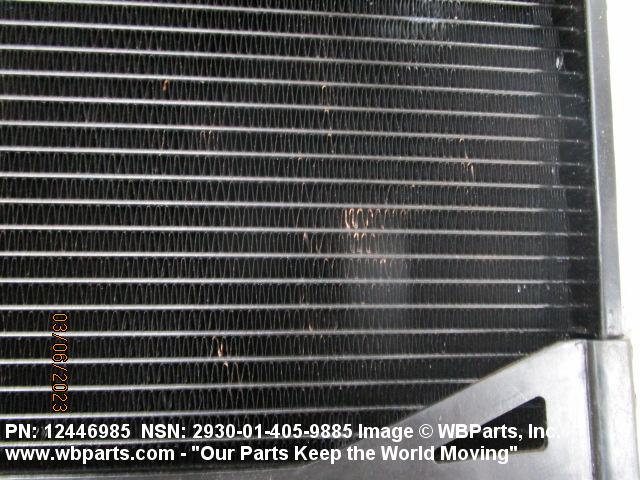 2930-01-405-9885 A heat transfer device having a tank(s) and core(s) specifically designed to reduce the temperature of the liquid in an internal combustion engine cooling system. Excludes engine oil cooler radiators.20229300045Engine Cooling System Components, Nonaircraft29350055Engine System Cooling Components, Aircraft Prime Moving