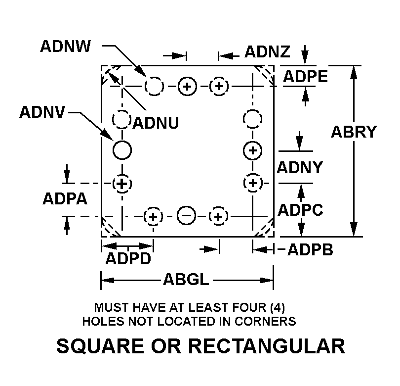 | DISTANCE FROM FIRST HOLE CENTERLINE TO END ALONG WIDTH | 2.000 INCHES NOMINAL |