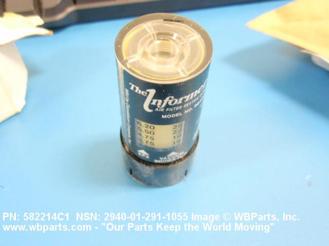 2940-01-192-4617 A mechanical indicator used on vehicular engines for dry or liquid type clearners to provide a visual warning signal when filter needs cleaning or changing.