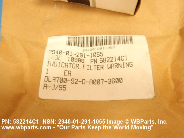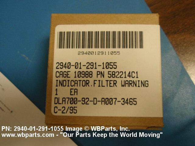 2940-01-291-1055 A mechanical indicator used on vehicular engines for dry or liquid type clearners to provide a visual warning signal when filter needs cleaning or changing.
