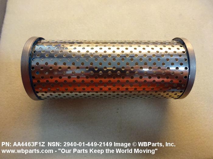2940-01-449-2149 A replaceable device designed to remove solid particles from fluids ranging in density from heavy liquids to gases. The removal of particles is accomplished by porous material (metallic or non-metallic), stacked disks, wound wire, or the like, constructed so the fluid can flow through the device while the solid particles are retained. It may be designed to fit into a FILTER, FLUID (or similar cavity), or it may have an integral outer casing and mounting facilities and be designed to connect directly to an engine, compressor, or the like. The degree of removal of particles must be nominally rated at less than 50 microns or absolutely rated at less than 75 microns. Excludes FILTER ELEMENT, AIR CONDITIONING. See also STRAINER ELEMENT, SEDIMENT.20916500058Aircraft Hydraulic, Vacuum, and De-icing System Components29100042Engine Fuel System Components, Nonaircraft29150064Engine Fuel System Components, Aircraft and Missile Prime Movers29400064Engine Air and Oil Filters, Strainers, and Cleaners, Nonaircraft29450059Engine Air and Oil Filters, Cleaners, Aircraft Prime Moving43300057Centrifugals, Separators, and Pressure and Vacuum Filters5999000065300053Hospital Furniture, Equipment, Utensils, and Supplies66300029Chemical Analysis Instruments
