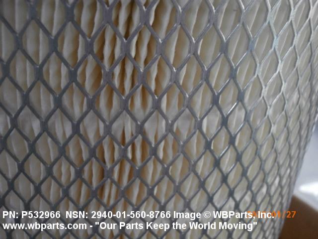 2940-01-560-8766 A replaceable device designed to remove dust, pollen or other foreign matter from the air passing through it. The removal of particles is accomplished by porous material (metallic or non-metallic), wire mesh, or the like. It is designed to fit into an AIR CLEANER, INTAKE.20329400064Engine Air and Oil Filters, Strainers, and Cleaners, Nonaircraft29450059Engine Air and Oil Filters, Cleaners, Aircraft Prime Moving43100028Compressors and Vacuum Pumps