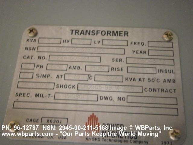 Part Alternates: 13403, 15942165, 159-42165, 9612787, 96-12787, 2945-00-211-5168, 00-211-5168, 2945002115168, 002115168