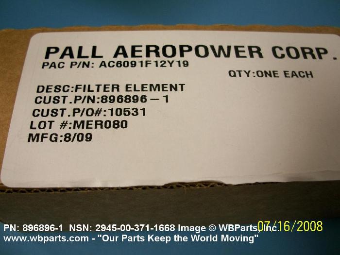 2945-00-371-1668 A replaceable device designed to remove solid particles from fluids ranging in density from heavy liquids to gases. The removal of particles is accomplished by porous material (metallic or non-metallic), stacked disks, wound wire, or the like, constructed so the fluid can flow through the device while the solid particles are retained. It may be designed to fit into a FILTER, FLUID (or similar cavity), or it may have an integral outer casing and mounting facilities and be designed to connect directly to an engine, compressor, or the like. The degree of removal of particles must be nominally rated at less than 50 microns or absolutely rated at less than 75 microns. Excludes FILTER ELEMENT, AIR CONDITIONING. See also STRAINER ELEMENT, SEDIMENT.20916500058Aircraft Hydraulic, Vacuum, and De-icing System Components29100042Engine Fuel System Components, Nonaircraft29150064Engine Fuel System Components, Aircraft and Missile Prime Movers29400064Engine Air and Oil Filters, Strainers, and Cleaners, Nonaircraft29450059Engine Air and Oil Filters, Cleaners, Aircraft Prime Moving43300057Centrifugals, Separators, and Pressure and Vacuum Filters5999000065300053Hospital Furniture, Equipment, Utensils, and Supplies66300029Chemical Analysis Instruments