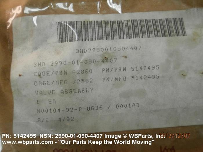 Part Alternates: 5135423, 5142495, 2990-01-090-4407, 01-090-4407, 2990010904407, 010904407